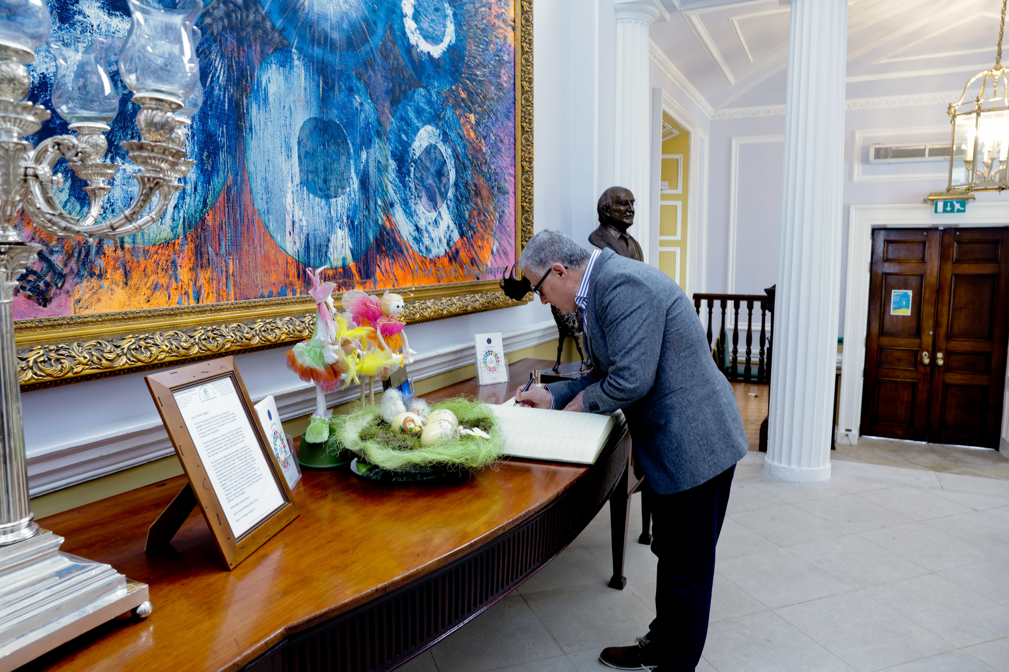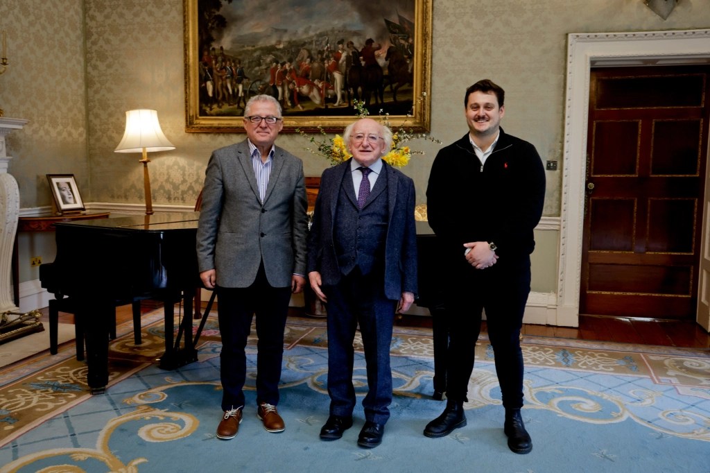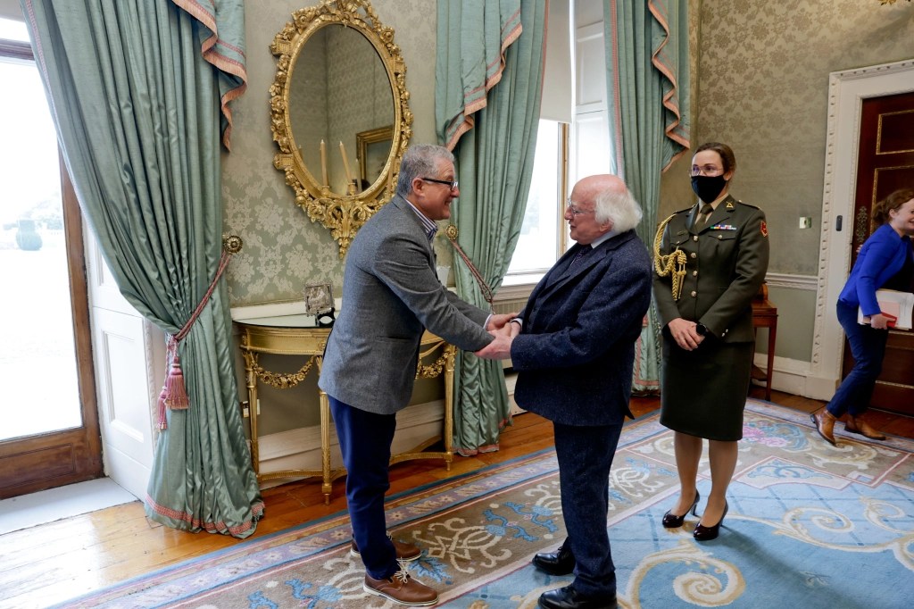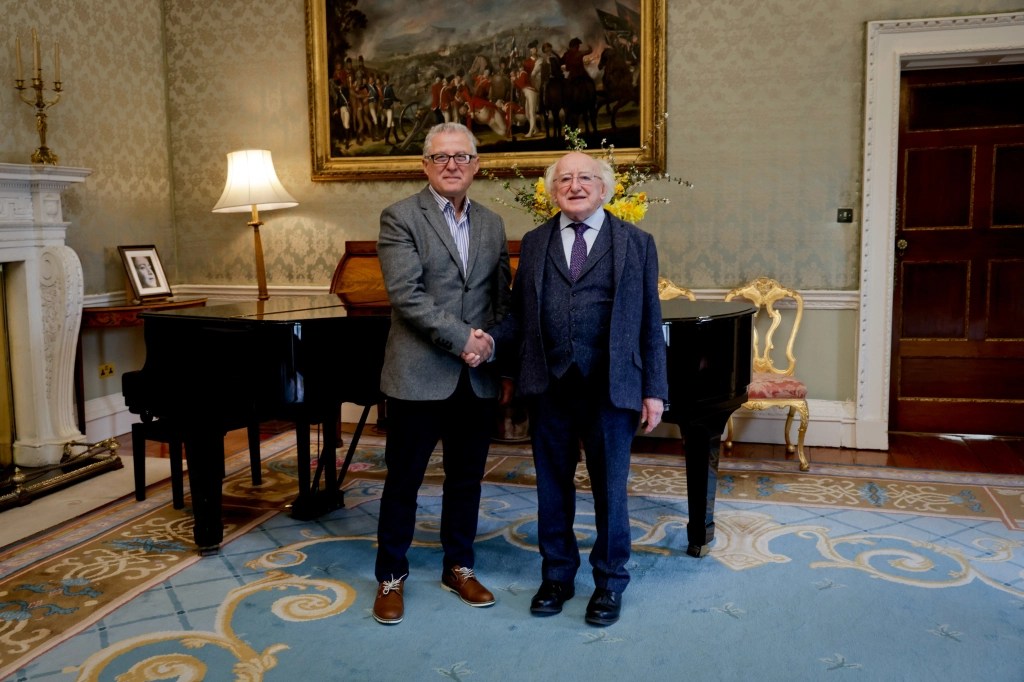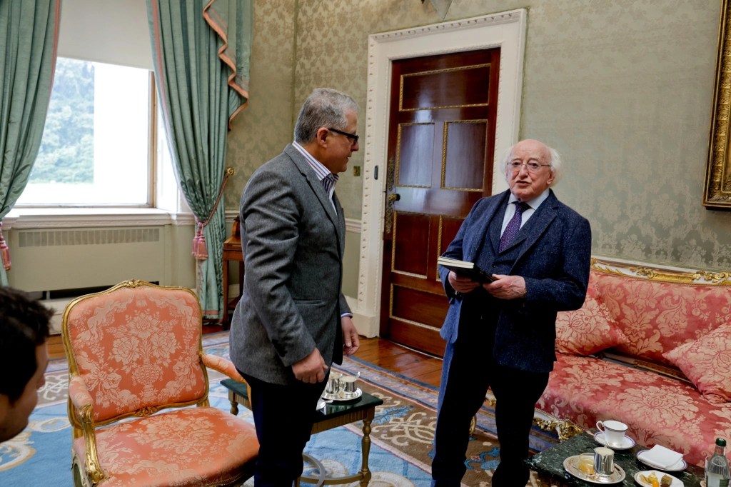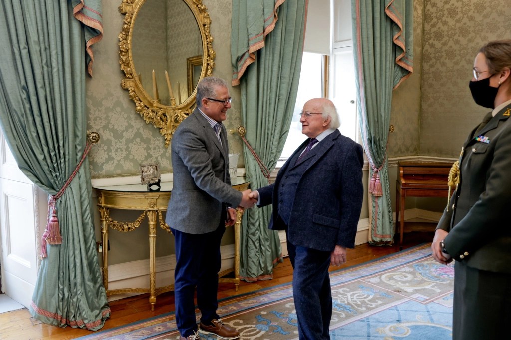 Home President Higgins receives Mr. Ndrek Gjini Date: -Author: Admin Click here to view it on the official website of the President: – President Higgins receives journalist and author Mr. Ndrek Gjini on a courtesy call. Tuesday 12th Apri, 2022 | 14:30. Location: Áras an Uachtaráin Share this: Click to share on X (Opens in new window) X Click to share on Facebook (Opens in new window) Facebook Like Loading...